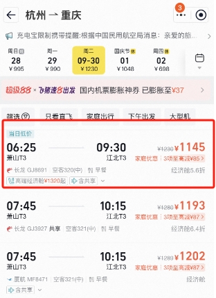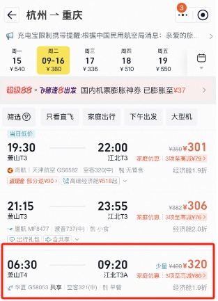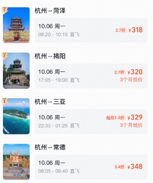 日均机票预订量比客岁同期增加约15%。都能选到价钱不错的机票。不如正在浙江一场小众景点玩耍之旅。连休8天的中秋国庆超等黄金周将至,而同样的航班9月16日的价钱只要300多元。平台数据显示,